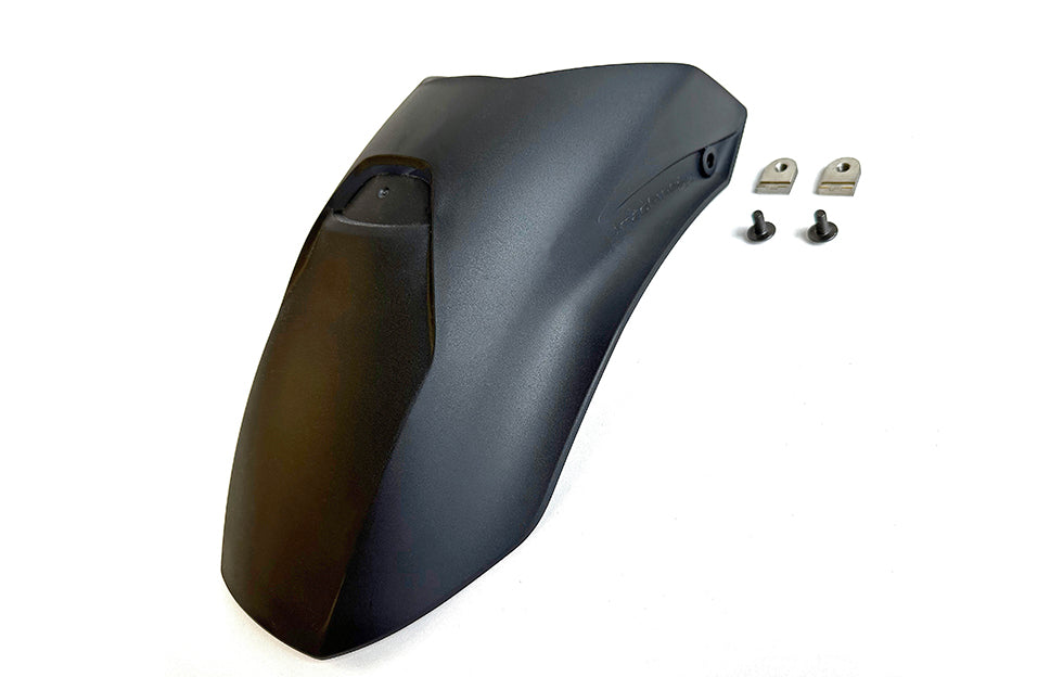 Avant GS-1300 is designed for "no drill" installation. It installs in just a few minutes with two screw clamps that grip the underside of the GS fender, as well as engaging the tip of the GS fender for a secure fit. A clear, protective 3M film is provided to apply to the fender before Avant is positioned and secured. It can also be easily removed for transfer to another bike in the future.